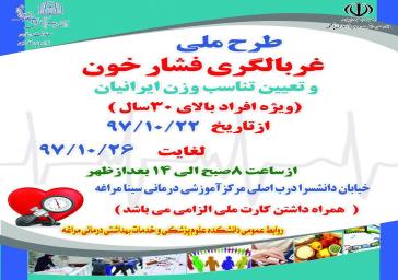 همزمان با روز پرستار و به همت اداره پرستاری طرح پایلوت ملی غربالگری سلامت افراد بالای 30 سال همزمان با سراسر کشور در دانشکده علوم پزشکی مراغه به مدت چهار روزآغاز می شود.