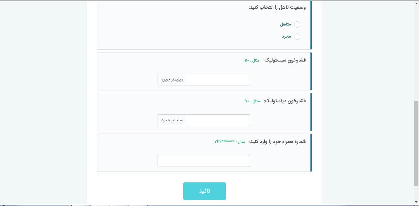 پس از مراجعه به سایت بهتر است راهنمای تکمیل پرسشنامه مطالعه گردد تا فشار خون بدست آمده با کمترین خطا ثبت گردد.