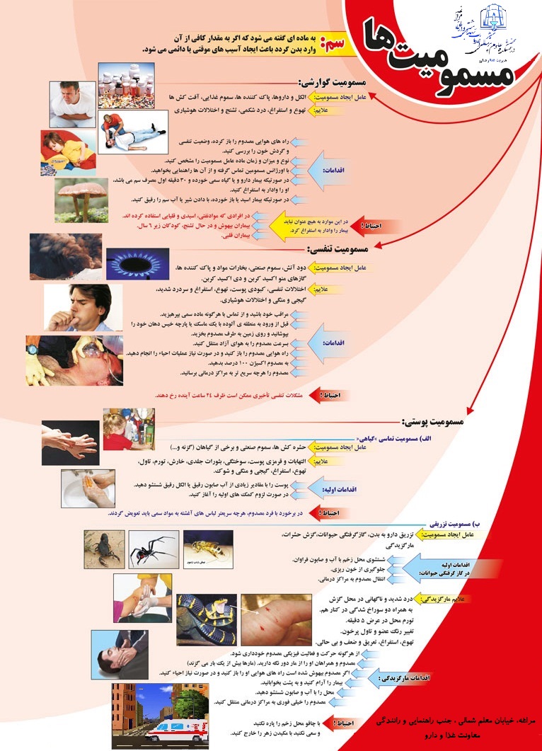 چهارشنبه پنجم آبان ۱۴۰۰: پیشگیری از بروز مسمومیت با سموم دفع آفات نباتی، مواد شیمیایی (شامل: اسید، قلیا و شوینده های خانگی، فرآورده های نفتی، فلزات سنگین مانند سرب، جیوه و باتری مینیاتوری)