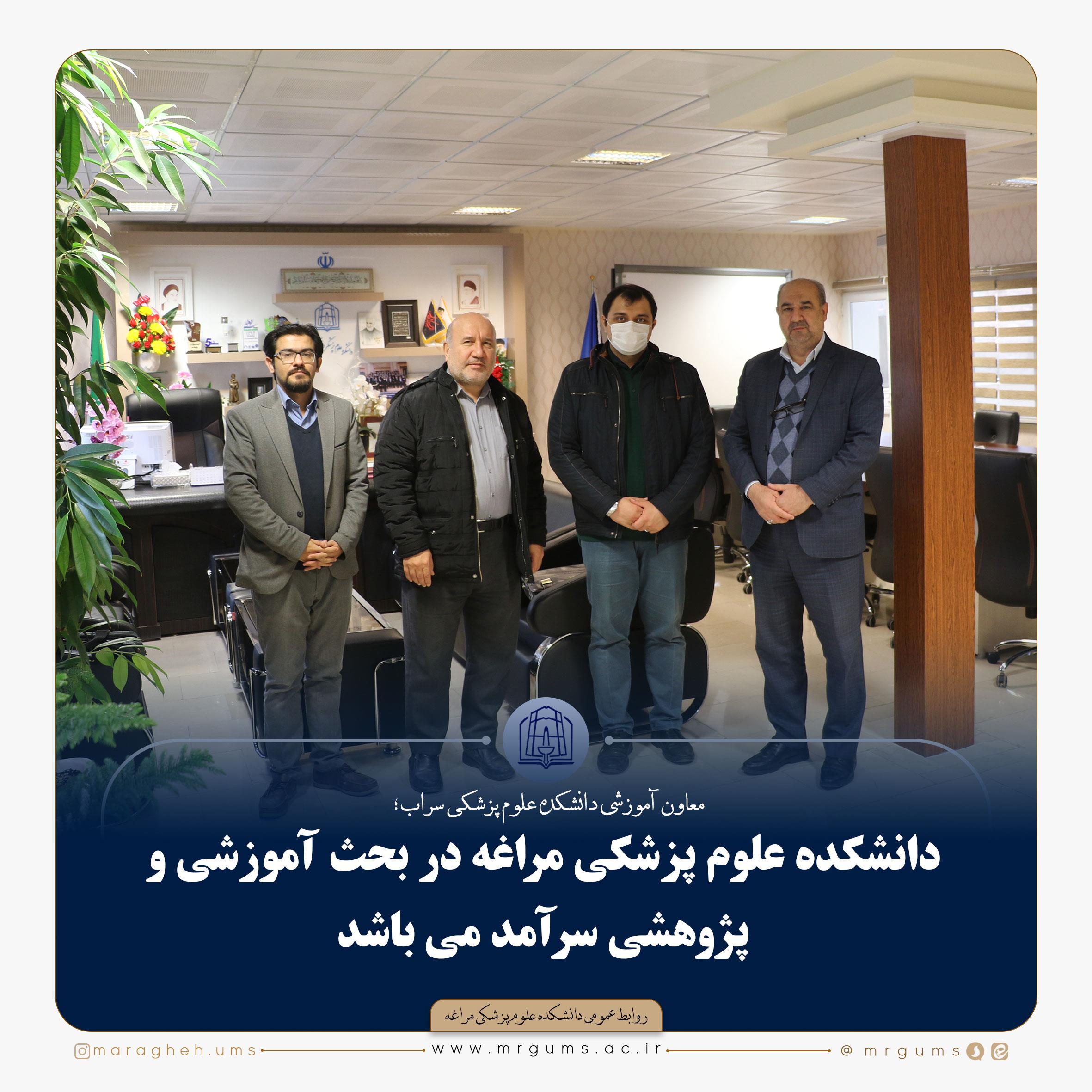 در این جلسه دکتر ارجمندی رئیس و دکتر احسانی معاون آموزشی این دانشکده با توضیح برنامه های آموزشی و پژوهشی این دانشکده به همراهی خود با دانشکده سراب برای گسترش همکاری تاکید کردند.