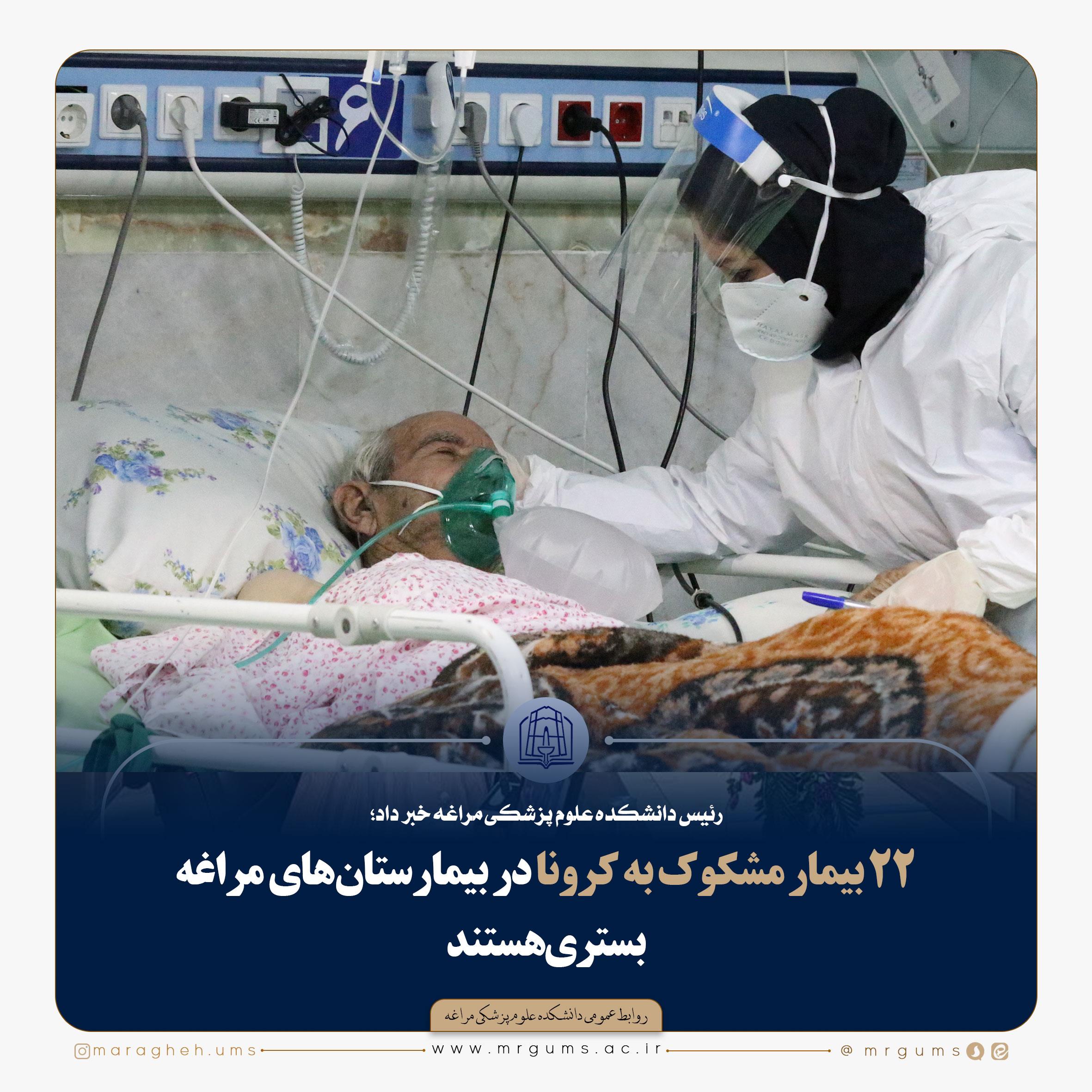 به گزارش روابط عمومی رئیس دانشکده علوم پزشکی مراغه با اشاره به روند افزایشی مراجعه بیماران مشکوک به کرونا به بیمارستانهای این شهرستان در ایام نوروز، گفت: اکنون ۲۲ نفر در بخش کرونای بیمارستانها بستری هستند.