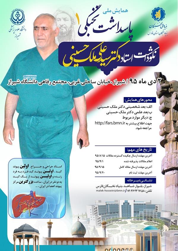 بنیاد نخبگان استان فارس با همکاری دانشگاه علوم پزشکی شیراز به منظور تکریم و تجلیل از خدمات پزشک و دانشمند گرامی جناب استاد دکتر سید علی ملک حسینی، همایشی ملی بزرگداشت این پزشک نامی را برگزار می کند.